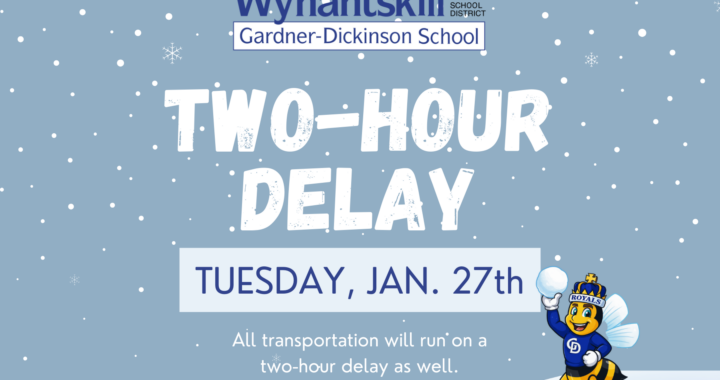 Due to poor road conditions, the Wynantskill UFSD will run on a two-hour delay tomorrow, Tuesday, Jan. 27th. All transportation will run on a two-hour delay as well. Stay safe!