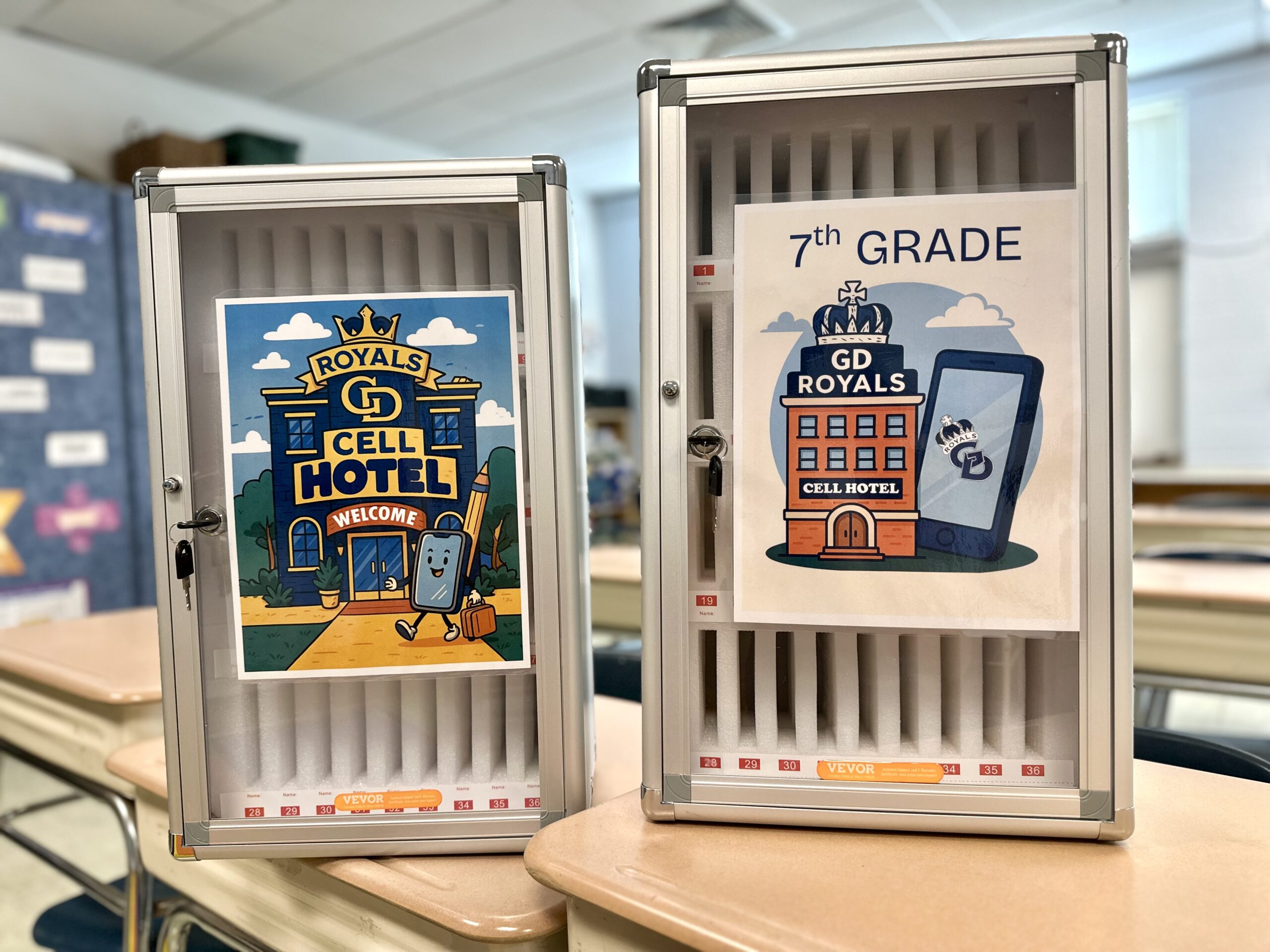 Students will place their electronic devices in secure cell phone caddies located either in their homerooms or the main office. We encourage families to keep electronic devices at home if possible.